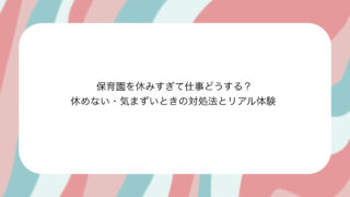保育園に通い始めると、「こんなに休むものなの…?」と不安になる方も多いと思います。・仕事を休みすぎて気まずい・これ続けられるのかな…・みんなどれくらい休んでるの?と悩むこともありますよね。この記事では・保育園でどれくらい休むのか・仕事への影...