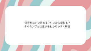 保育園に通うことが決まると、・保育料っていつ決まるの?・途中で変わることある?・いつから金額が変わるの?と気になる方も多いと思います。実際、保育料は決まるタイミングや変更時期が分かりにくいと感じることも多いです。この記事では・保育料が決まる...
