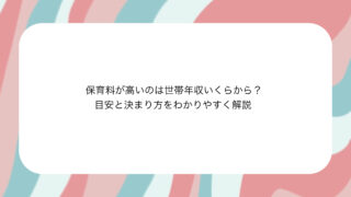 保育園に通い始めると、「保育料ってなんでこんなに高いの?」と感じる方も多いと思います。・うちだけ高い?・世帯年収いくらくらいでこの金額?・平均ってどれくらい?と気になりますよね。この記事では・保育料と世帯年収の関係・高くなる目安・実際の体験...