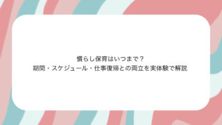 慣らし保育が始まると、・ずっと泣いている・なかなか時間が伸びない・仕事復帰に間に合うか不安など、戸惑うことも多いと思います。我が家の場合は比較的スムーズに進みましたが、周りでは・慣らし保育が長引いた・復帰後もしばらく大変だったという声も多く...