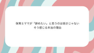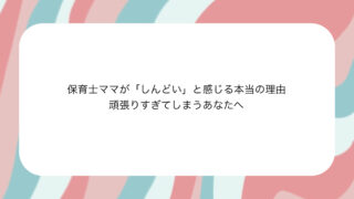 「なんでこの時間になると、こんなに余裕がなくなるんだろう」保育士ママのしんどさは、ずっと同じ強さで続くわけではありません。実は**“時間帯によって、しんどさの質が違う”**ことが多いです。今日は、保育士ママの1日を時間ごとに区切って言語化し...